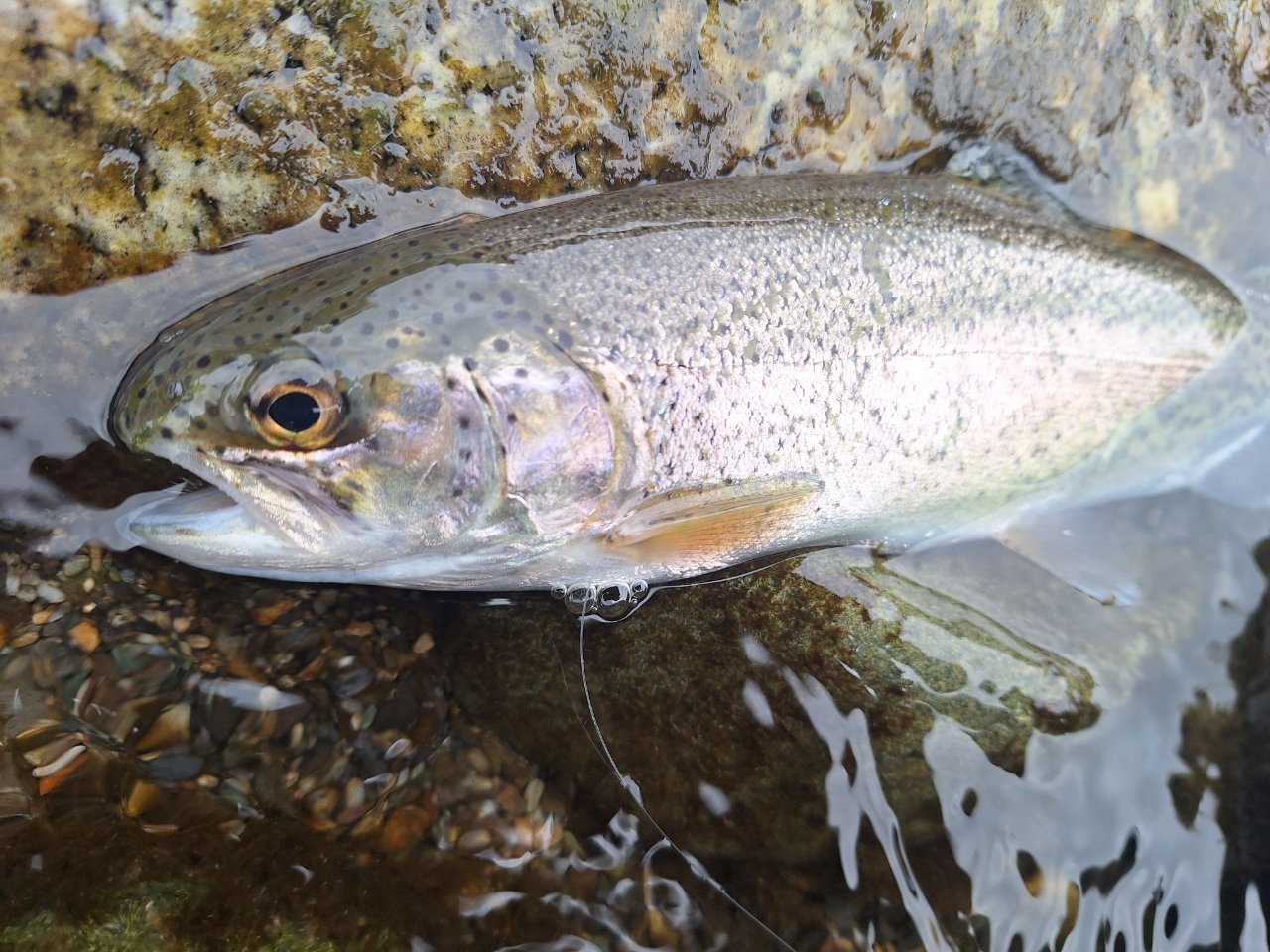天竜川のルアー・フライ・テンカラ専用区へ行ってきました。バラしてしまいましたが明らかにデカいヤツ(60?70?)もヒット!瀬の中でも元気なニジマスがヒットがあるなどなかなか釣り場の調子は良さそうです。周りにいた方達も結構釣っていました。