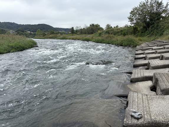 10/16(木)14:00頃の「奥多摩川 河辺グランド前」です。