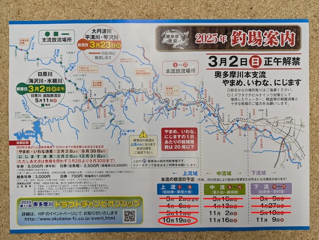 10月19日(日)は【奥多摩川上流域ニジマス放流日】ですよ♪