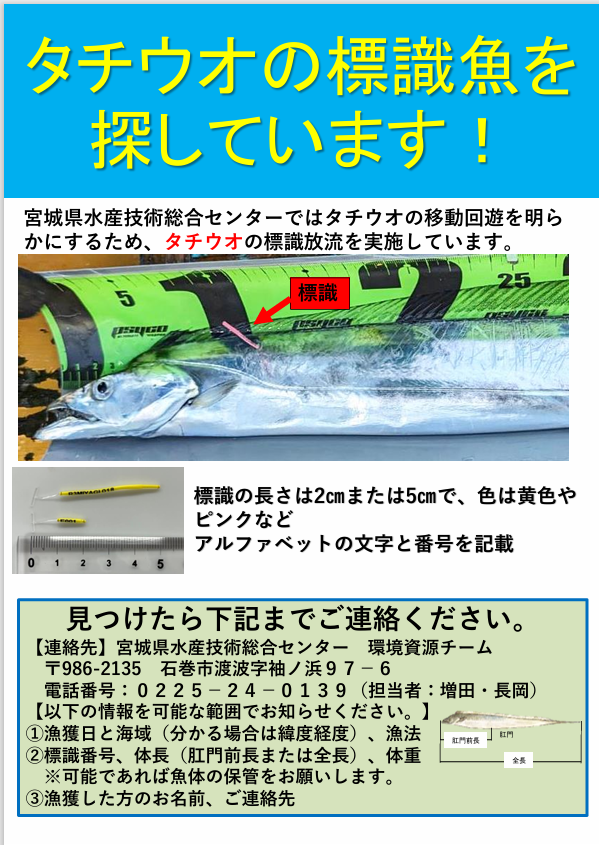聞いた話だと追波湾でタグ付けしたタチウオが8年後に岩手で釣れたらしいですよ!!