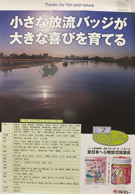 令和7年度のへら鮒放流協賛バッジが届きました。