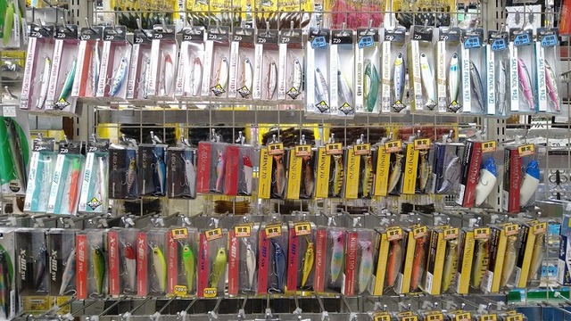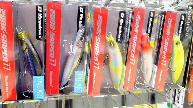 こんな感じでMegabassルアーのコーナー?上の段に並んでいます。