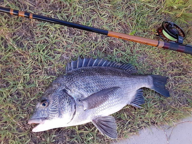釣果は35~43cmクロダイが2枚、エサを良く食べている感じで引きも強くなかなかの厚みのあるいい魚でした。
