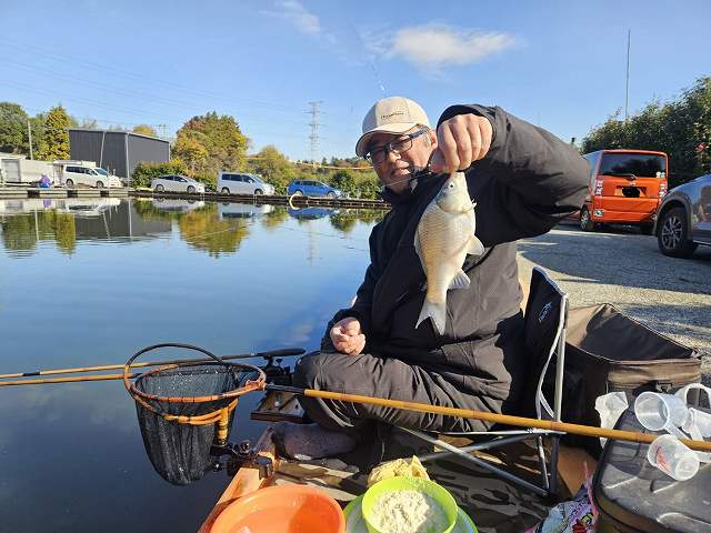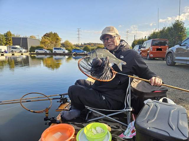 野田店スタッフは8尺メーター両ダンゴという強気の攻めを選択していましたが、あっさりゲットし、多少、エサのタッチに手こずっている様子でしたがまずまずの釣果です。