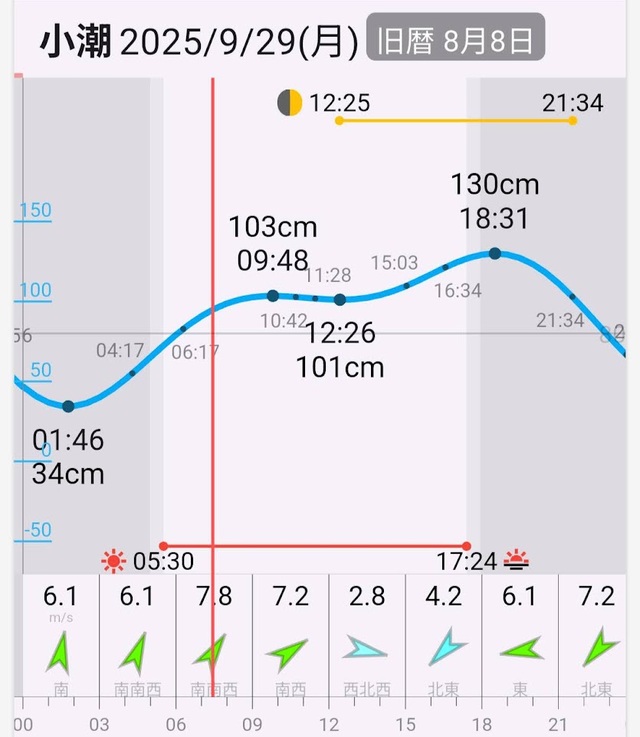 当日のタイドグラフです。