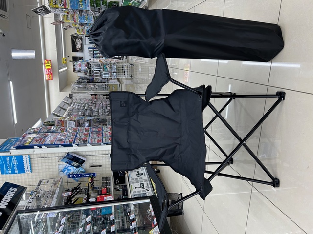耐荷重は約80kg、釣にはもちろん、キャンプや花見など様々な用途で使えます。左のひじ掛けにはドリンクホルダーも装備してます。色はブラック・ネイビーの2色。初回は入荷数が少ないのでお早めにご来店ください。