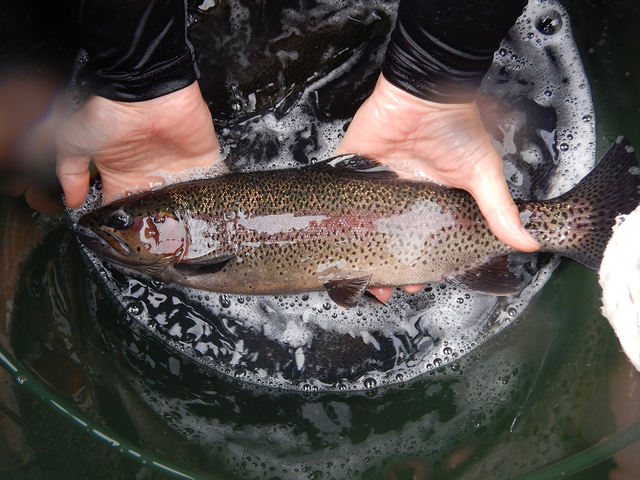 五十嵐川で主に放流されている魚はレインボートラウト(ニジマス)です。