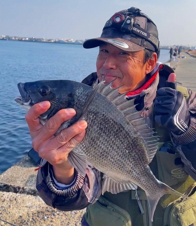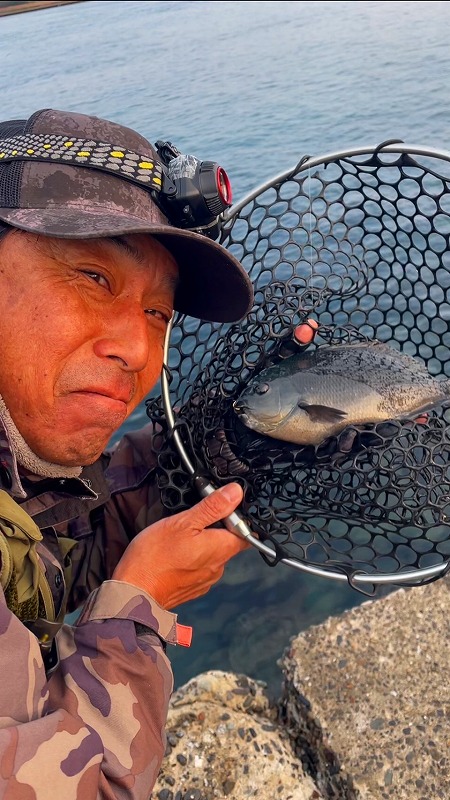 力強い引きで上がってきたのは予想外!38㎝のクロダイでした。