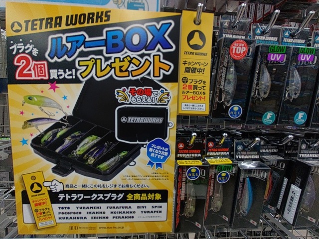 大人気のテトラワークスのルアー(プラグ)2個お買い上げで、レジにて『限定ケース』をプレゼントしております