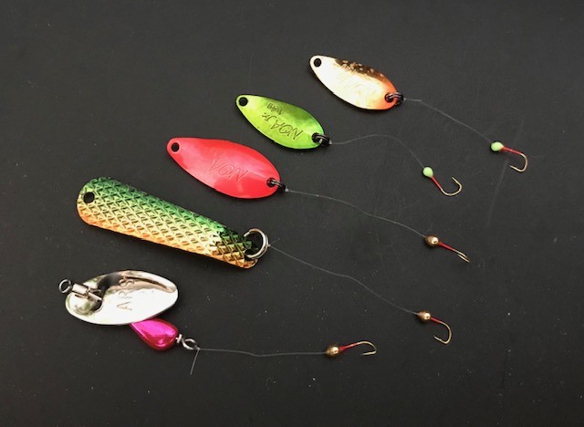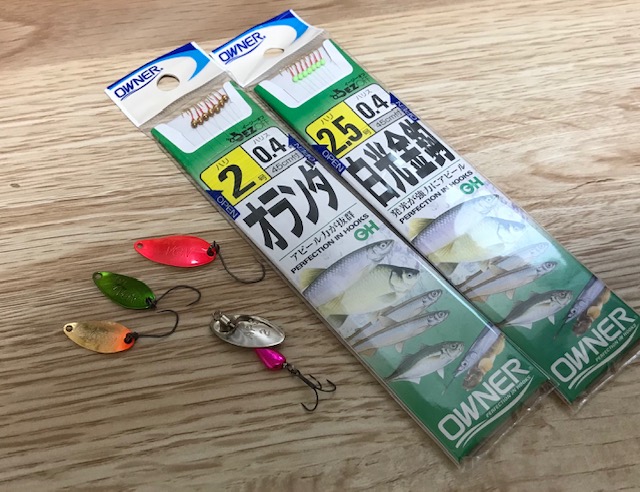 渓流用のスプーンやスピナー、管理釣り場用の2g前後のスプーンでもOK。