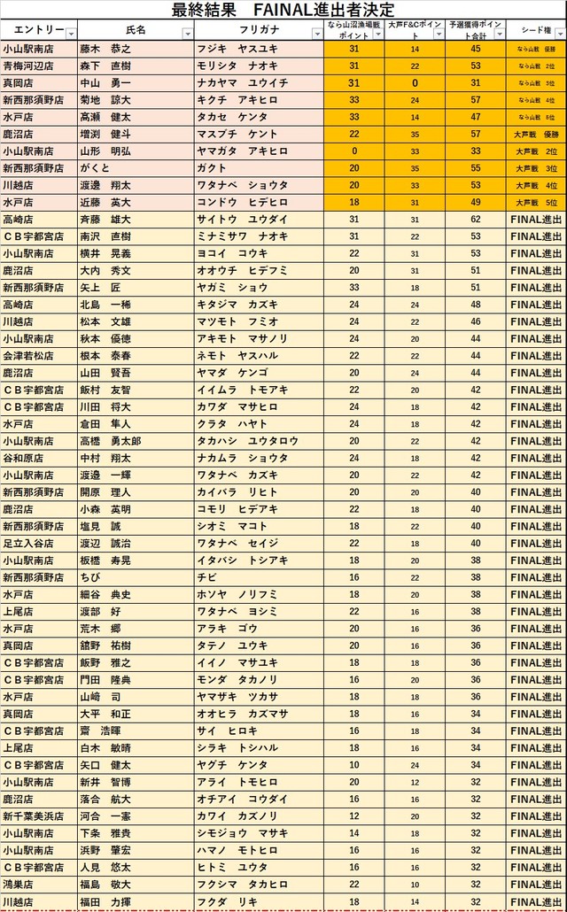 権利獲得者様には大会本部より、最終戦参加の有無の確認連絡をさせて頂きます。