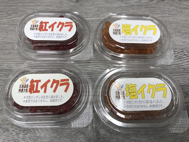 画像左より、アトラスイクラシュガー、チヌーク、極上生イクラ、生イクラ