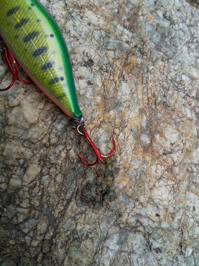ルアーを外すとフックが伸びて、強引に戻しましたが、やはりダメ。