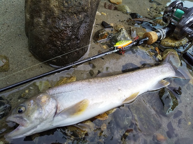 今度はダウンクロスメインでじっくり魚にルアーを見せて釣り下ります。