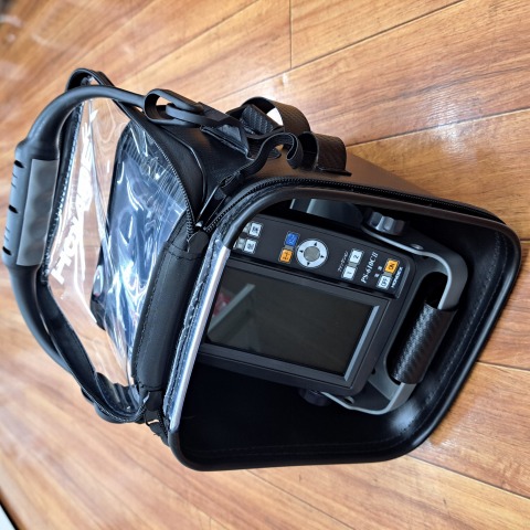 大形の簡易防水ファスナーが大きく開き、魚探操作がしやすい