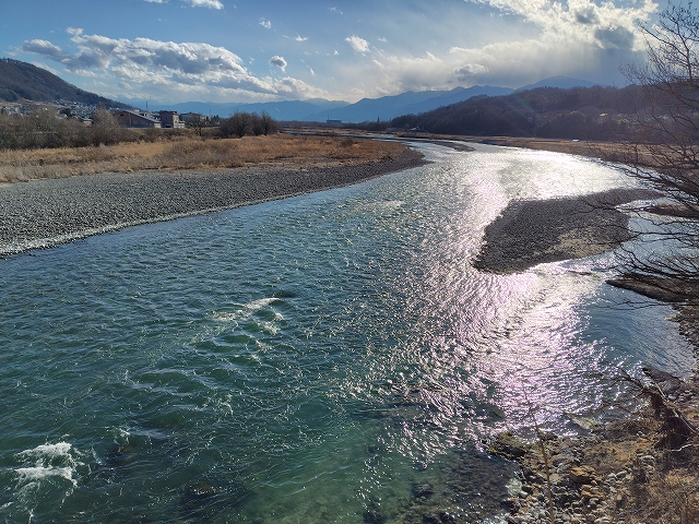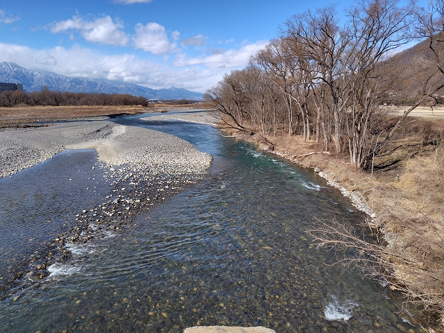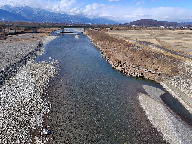 安曇野ICを降りてR19に向かうときに渡る橋です。遠方から訪れる釣人の多くがこの橋を渡るのではないでしょうか。