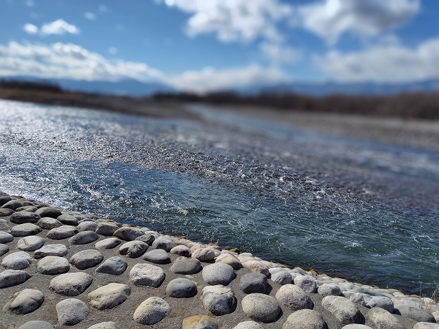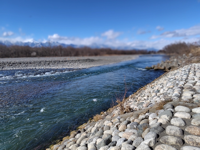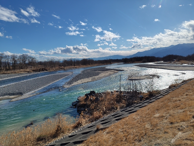 少し上流には犀川で1番の有名ポイント「三川(さんせん)合流」があります。上流側から万水川、穂高川、高瀬川の3河川が左岸から合流しています。