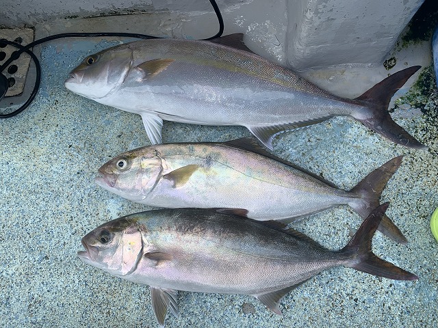 なかなかカンパチを仕留めることができなかったスタッフも後半になりようやくカンパチを連続キャッチ!3.4㎏頭に3本獲ることができました。