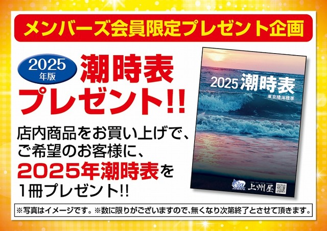 〔メンバーズ会員限定!〕セール期間中、店内商品をお買い上げでご希望のお客様に『2025年潮時表』を1冊プレゼント!