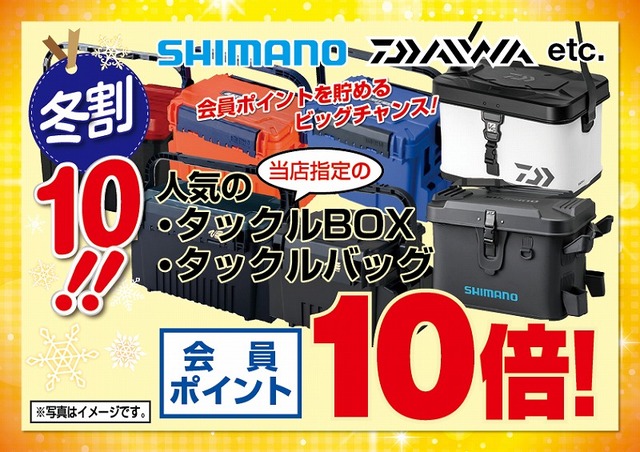 冬割10!!セール期間中、シマノ、ダイワetc.当店指定のタックルボックス各種、タックルバッグ各種が会員ポイント10倍!