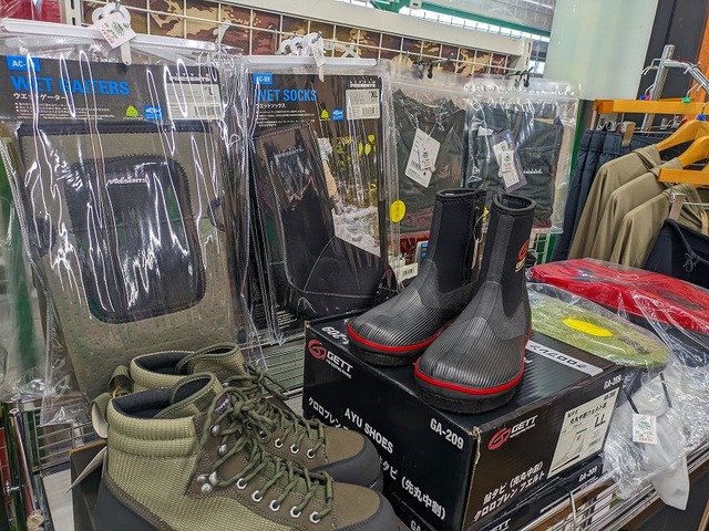 ウェーディングシューズやゲーター・ソックスなどもバッチリ取り揃えております。