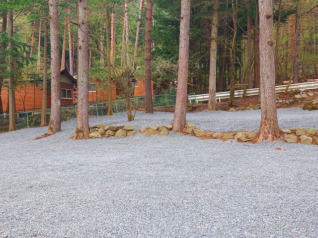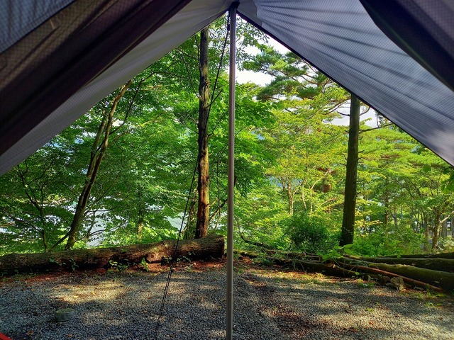 テントサイトは林間の砂利サイト。