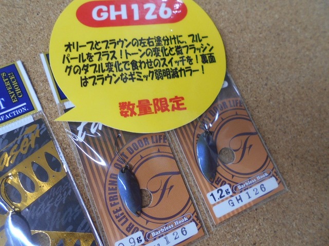 上州屋可児店エリアルアー入荷情報!本日はフォレスト様より今月のオリカラスプーン第126弾カラーが入荷!オリーブとブラウンの左右塗り分けにブルーパールをプラス!トーンの変化と微づラッシングのダブル変化で食わせのスイッチを!裏面はブラウンなギミック弱明滅カラー!