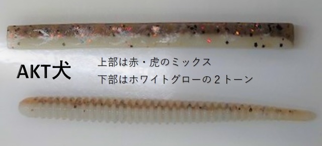 秋田犬 代表の3色(赤・虎・白)を1本のワームで演出し奇跡のカラーが誕生しました。