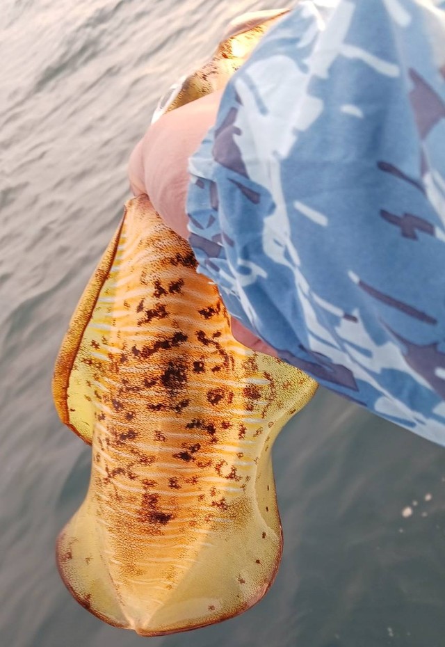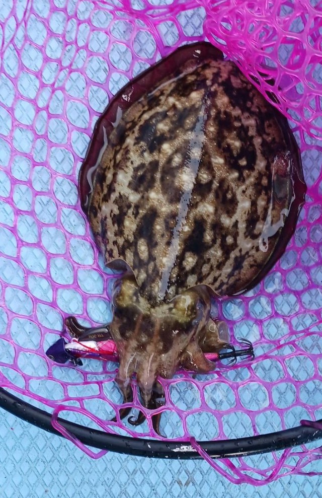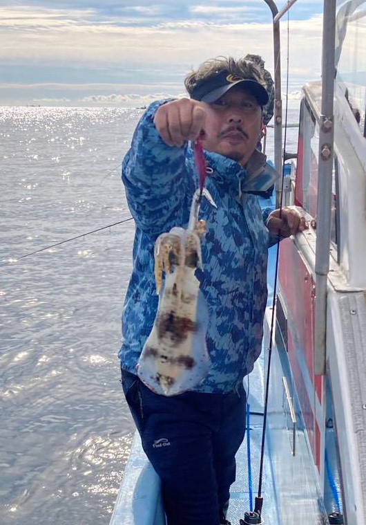 釣行前に当店で購入したタックルが良かったのかレンタルボートで良型アオリ4杯、コウイカ1杯の釣果です! お見事です!