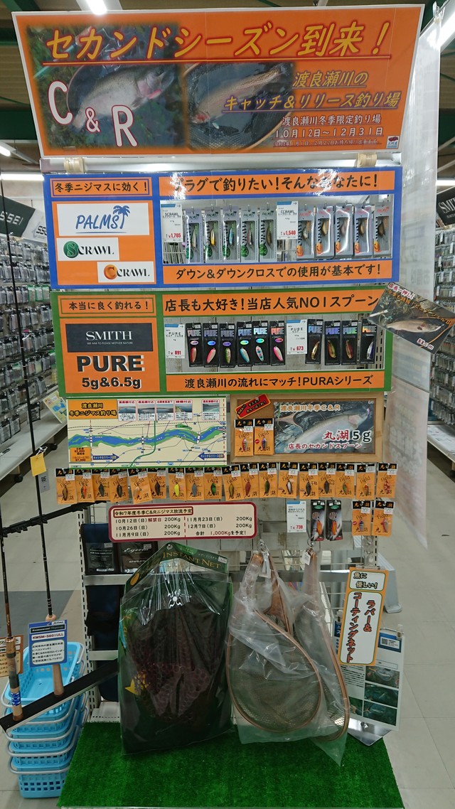 店内には、渡良瀬川冬季ニジマスC&Rコーナー(ルアー&エサ釣り)も設けてありますので、お立ち寄りの際にはご覧になってください。