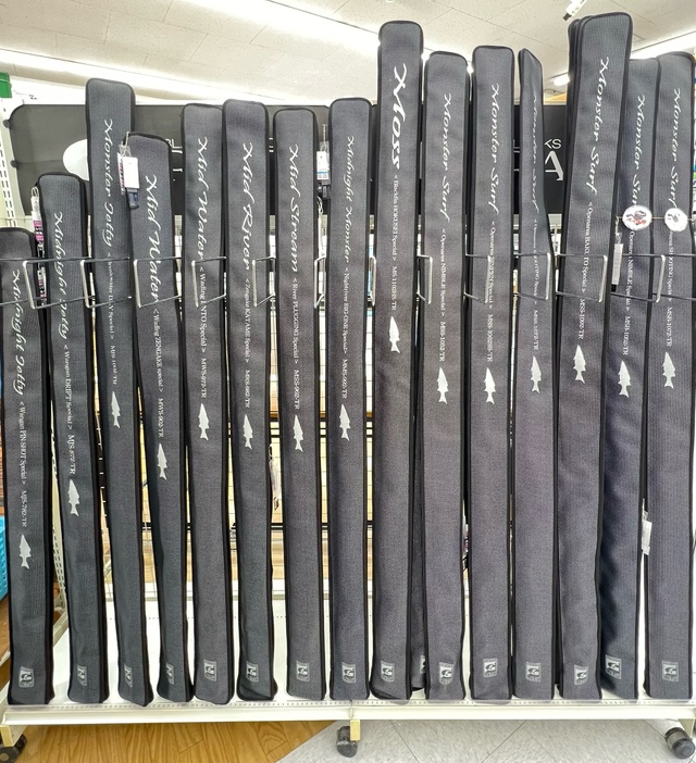 現行の人気ロッドもずらりと並び、手に取ってお試しいただけます‼︎
