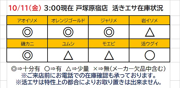 戸塚原宿店★10/11(金)3:00現在の釣りエサ在庫状況★