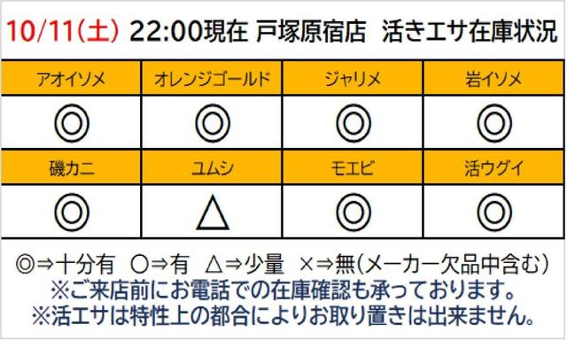 10/11(土)22:00現在の釣りエサ入荷状況のご案内です!!