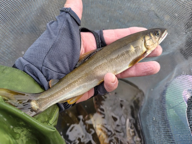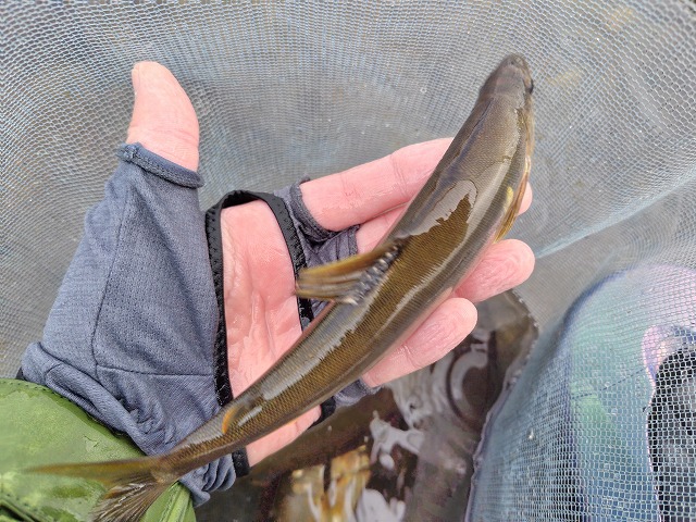 サイズは18㎝ほどでしたが、友釣りでキャッチした鮎に喜びもひとしおです。
