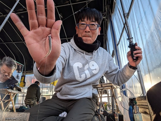 午前中は12m前後をコツコツと拾い釣り、時には連掛けも有りましたが最高でも3連。 しかし、この日も試しに底を探ってみると~数匹ですが今シーズンはじめて釣れてくれました~! これからのシーズン徐々に冬のワカサギらしい底釣りのシーズンに変化してきますね~