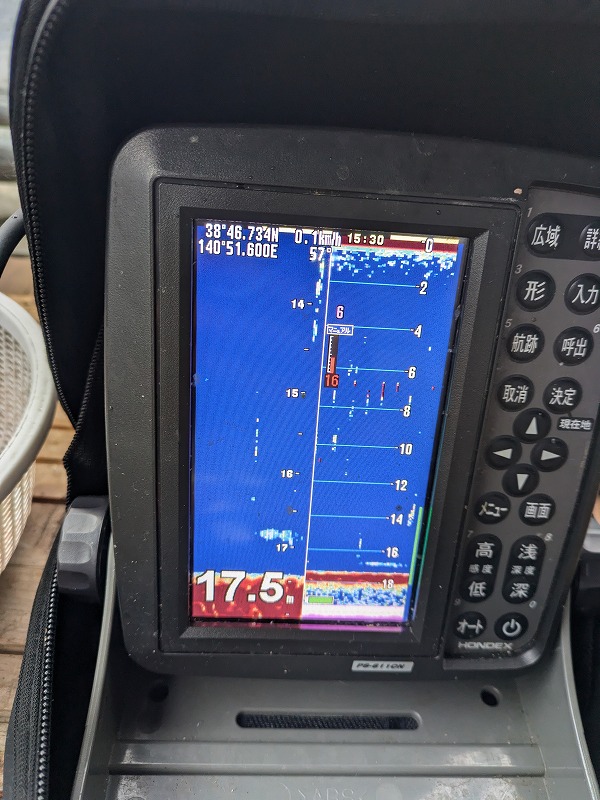 お昼を満喫したところで魚探反応が・・・チ~~ン(汗)