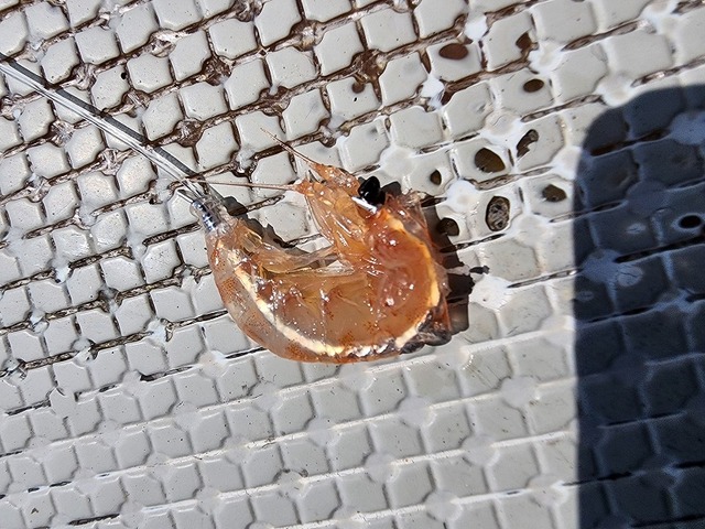 エサのオキアミはハリ先が隠れるように丸めてつける