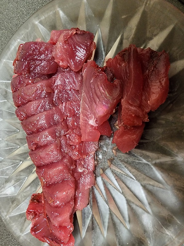 お刺身で食べましたがもちもち感があって釣りたてのカツオは旨かったです。