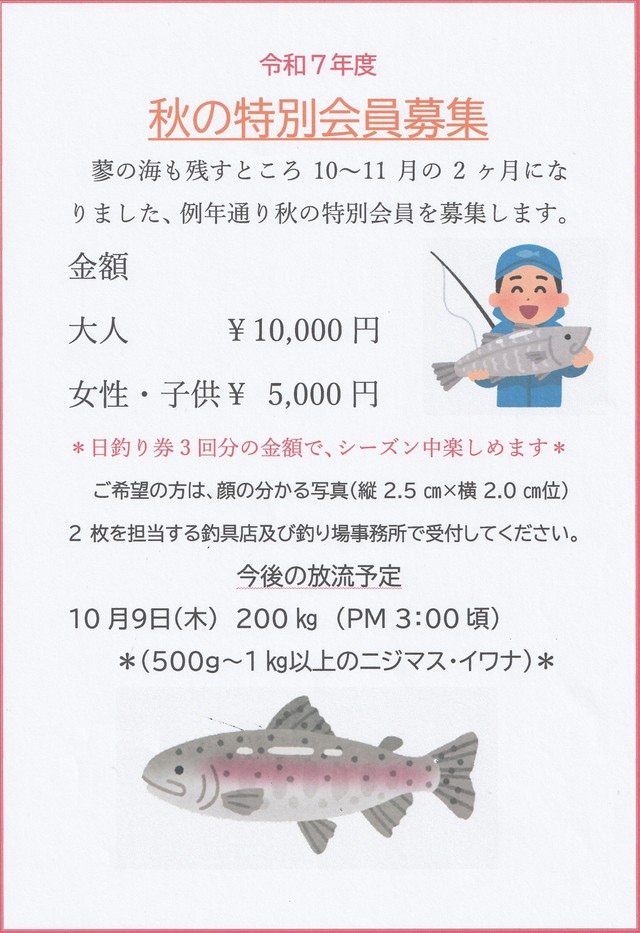 ※蓼の海の秋の特別会員募集です