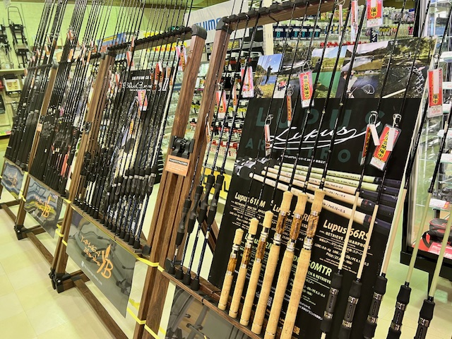 お客様ご自身がお持ちのリールをお持ち込み頂ければ、展示ロッドにセットしてリールとのバランスをチェックしていただくことも可能です。お気軽にお試しください。