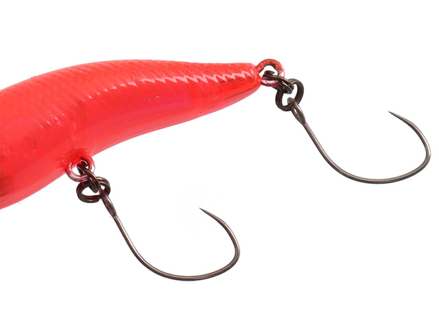 内部には左右移動式ウェイトを搭載し「音」によるアピールも出来るなど、「水押し」「視覚」「水流」「音」という様々な角度からトラウトを刺激!