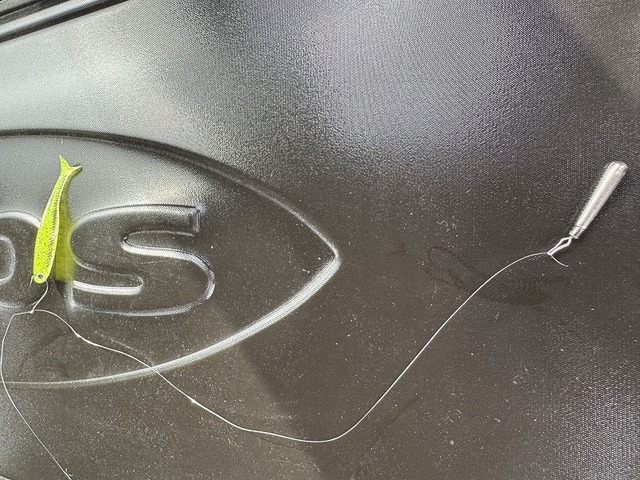 水温が上がったことで変えたのがフックからシンカーまでの間隔。