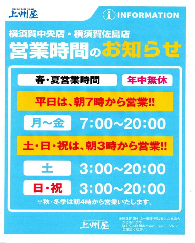平日は7時より、土日祝日は3時オープンとなりますので 是非ご利用くださいませ。