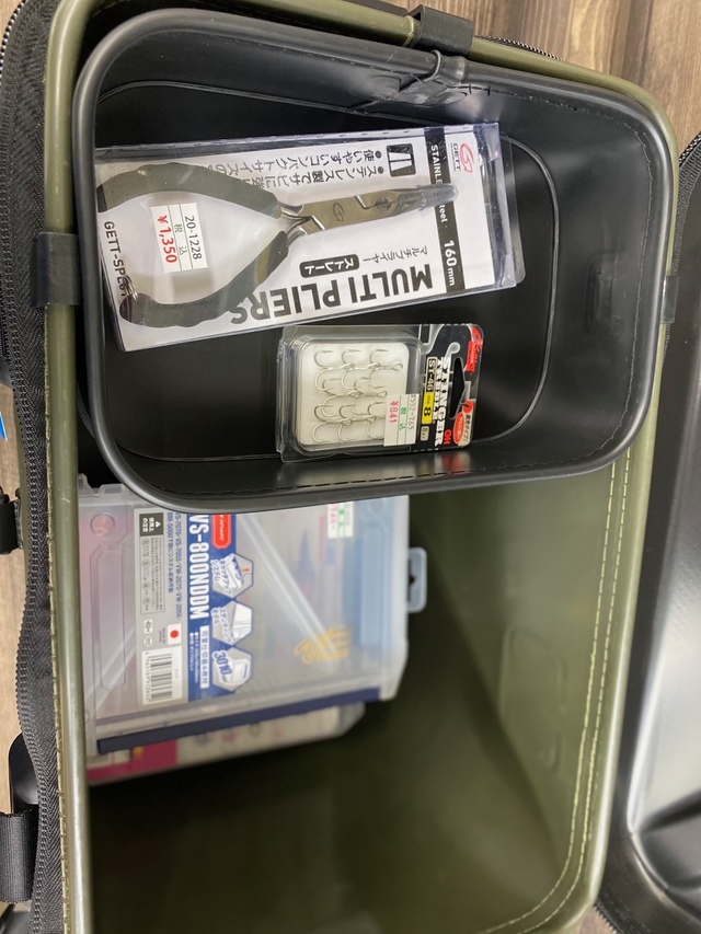 インナートレーがあると、よく使うリーダーやプライヤー・ハサミ・替えの針などはトレーに入れておけばバッカンの中で行方不明にならずスムーズな対応が可能!