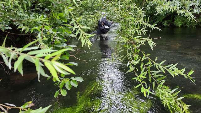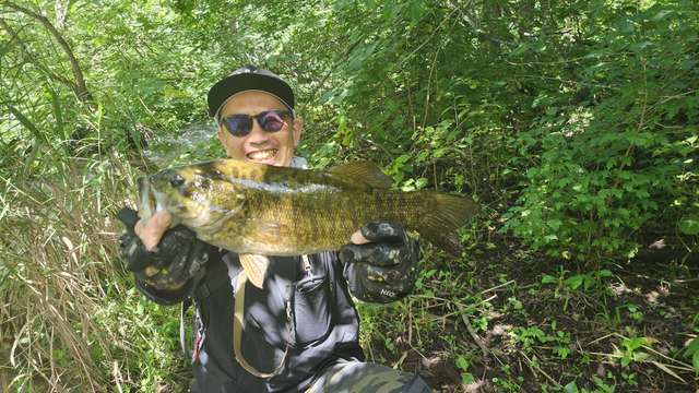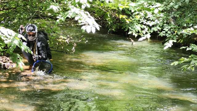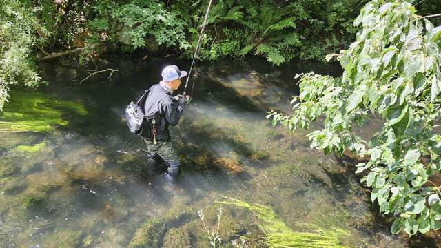 歩行ルートを含めた釣り方やキャスト精度など渓流釣りの経験値が高い岡選手は次々にポイントを攻めながら遡上していきます。