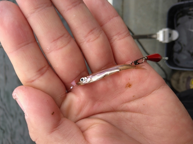 外道も活発で掛かっているワカサギを巻き上げ途中にハリスごと持っていかれたりするので仕掛けの予備は多めに。