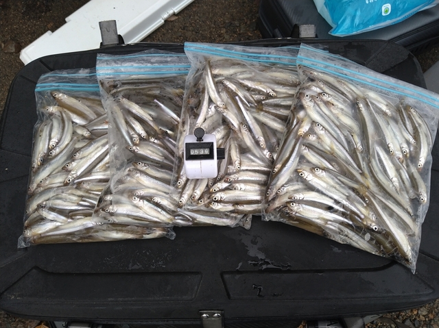 1日ズットボートの下にワカサギが入っていたので途切れることなく釣り続けて3時に終了。