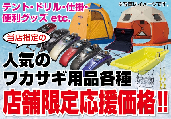 テントやアイスドリルがお買い得なので、氷上のワカサギ釣りを始めてみたい方は今がチャンス!?