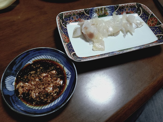 釣れたカワハギ、ウマヅラは刺身とキモ醤油