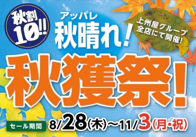 2025年10月10日セール・イベント ロッド、リールがお買い得! 秋晴れ!収獲祭!セール、只今好評開催中!10/9(木)より当店指定の「ロッド&リール」の割引セール、第2弾が始まりました!!開催期間は11/3(月・祭)まで!この機会をお見逃しなく!! 出典: 上州屋からのお知らせ ・会員証機能を搭載!お買い物や釣りの準備がもっと便利になる上州屋“公式”アプリ登場!・【上州屋メンバーズカード】毎月5の付く日と30日(5日、15日、25日、30日)はポイントアップデー!